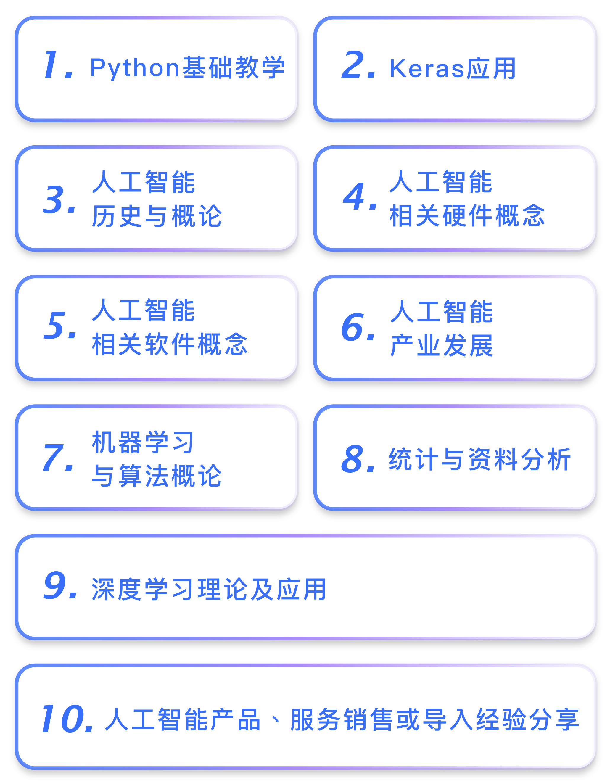 本学院2018年第一期人工智能新秀班招生对象为工作需接触AI领域相关非技术人员,举凡科技领域业务、营销、项目经理、行业主管等相关职务,一个月时间训练学员了解当前产业应用及未来发展趋势、了解基础技术概念可和技术人员深度沟通合作,使学员毕业后无论创业、参与人工智能项目或是进入相关行业工作,皆可得心应手。